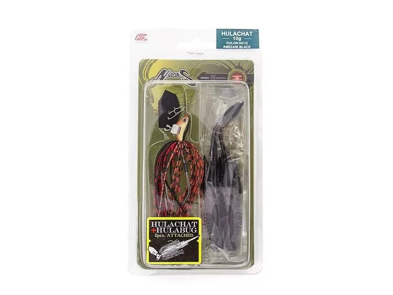 Diese Chatterbaits zeichnen sich durch ihr abwechslungsreiches und unberechenbares Laufverhalten aus, welches durch den Wasserdruck während des Einkurbelns auf das frei bewegliche, extrem dünne Metallblatt erzeugt wird. Somit lassen sich große Wasserflächen schnell und effektiv nach hungrigen Räubern wie z. B. Barschen und Hechten absuchen. Der Kopf des Hulachat ist sehr ausbalanciert, wodurch der Köder immer aufrecht schwimmt. Das erleichtert es auch, die gewünschte Lauftiefe beizubehalten. Neben den optischen und beweglichen Reizen punktet der Hulachat zusätzlich durch seine verursachte Geräuschkulisse, die Aggressionsbisse auslöst. Am Schenkel des scharfen Hakens wurde ein Stück Hardmono als Widerhaken für eingesetzte Trailer angebunden.Als Trailer wird der Nories „Hulabug“ empfohlen, von dem bereits zwei Stück im Lieferumfang mit inbegriffen sind.